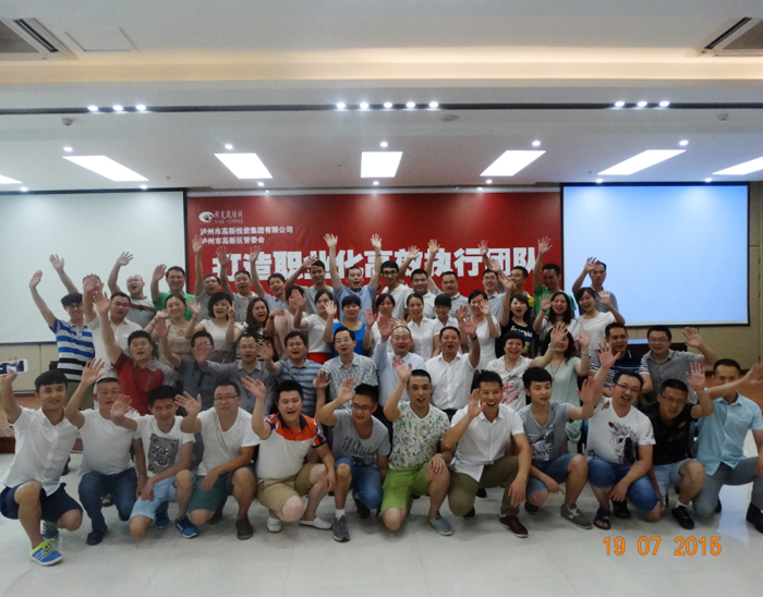 2015年7月18日全司管理人員參加由高投集團和高新區(qū)管委會組織的《職場商務(wù)與政務(wù)禮儀》、《打造職業(yè)化高效執(zhí)行團隊》的培訓后大合照